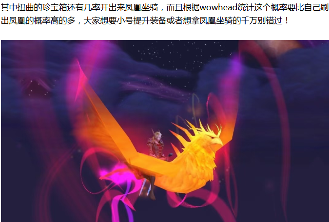 【魔兽世界】地心追赶开启!下周可拿2件英雄装备还有凤凰坐骑,千万别错过