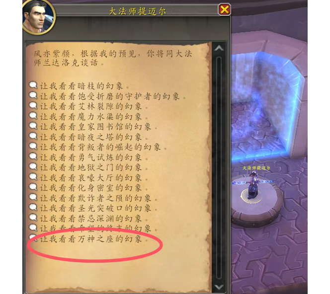 这时候,我们就会被传出来,接着马上跟NPC对话继续拍万神之座。这次进入副本后,我们马上点开传送出地下城