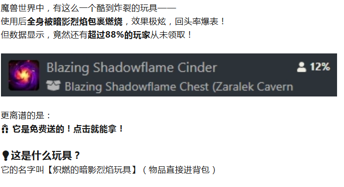 【点击就送】88%玩家都错过的暗影烈焰玩具!站街回头率爆表!
