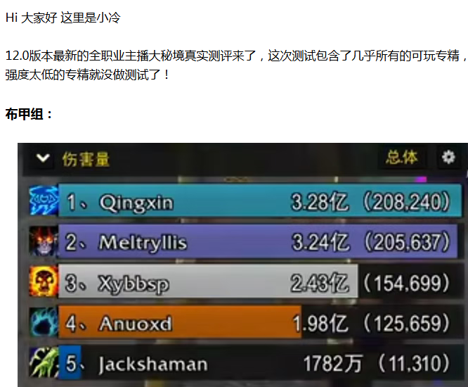 【魔兽世界】12.0版本最真实的全职业排行来了!这四个职业稳进国家队