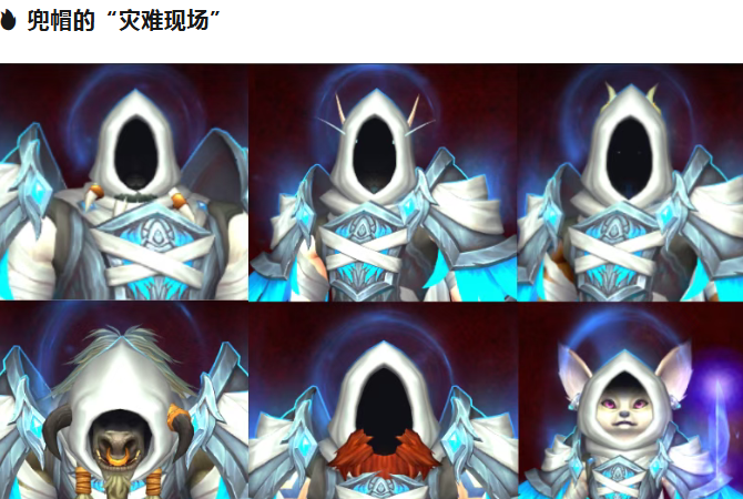 套装中的头部主打外观,是一个类似灵魂医者风格的兜帽,本该营造神秘氛围。
