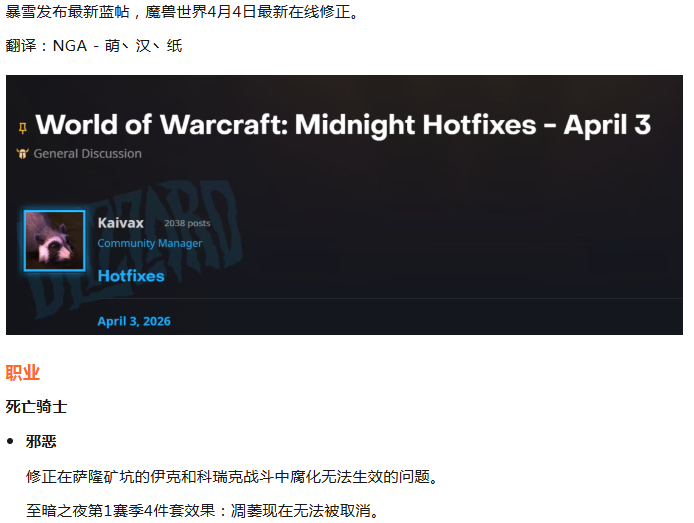 魔兽世界:4月4日最新在线修正