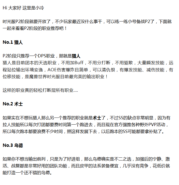 【魔兽世界】时光服P2职业推荐,DPS只推荐一个职业,轻松打断层所有人