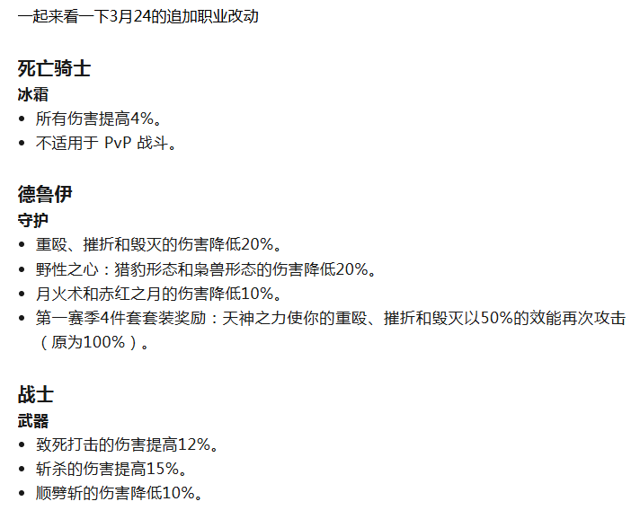 【魔兽世界】正式服3月24日最新职业改动!1个职业获得史诗级加强