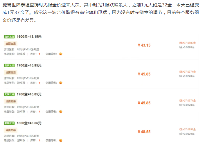 魔兽时光服:金价迎来大跌!
