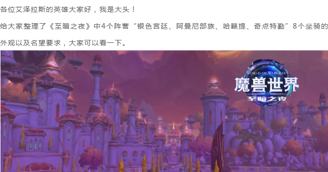 魔兽世界:至暗之夜8个声望坐骑外观预览,银色宫廷坐骑很不错!