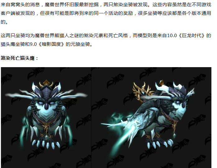 死亡猫头鹰坐骑来袭!大量魔兽新内容发现