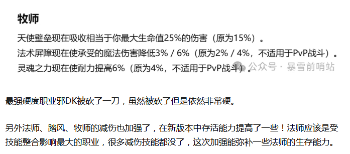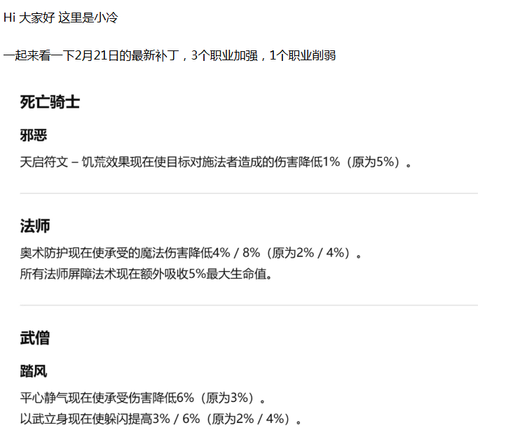 【魔兽世界】2月21日最新补丁!3个职业加强,1个职业削弱