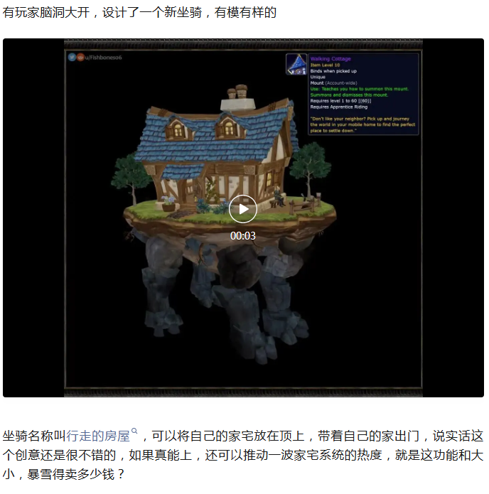 魔兽:玩家替暴雪设计新坐骑!行走的城堡,这该卖多少钱?