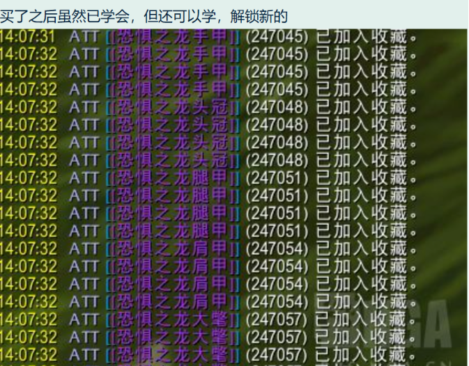 因为军团remix中的套装是可以同时给好多个职业解锁的,如果你已经含有此套装里的一套,系统就会提示已经学会,但是我们购买后依然可以解锁海量幻化!