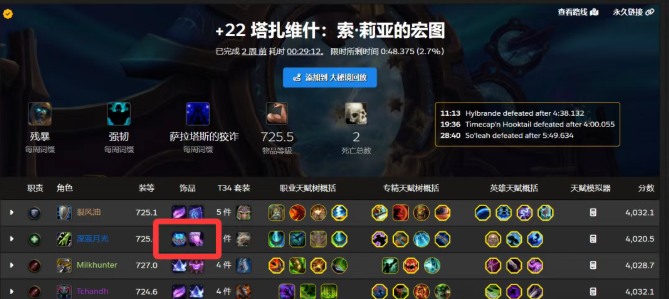 如图所示,现在冲层的法系基本上都会带这个饰品,不管是治疗职业奶德、奶萨还是输出职业元素萨、奥法,只要能凑出套装效果基本上都会选择这个饰品为常驻饰品,所以大家如果是能凑出套装属性的法系,一定不要错过这个饰品,确实是现在最强的被动饰品了!