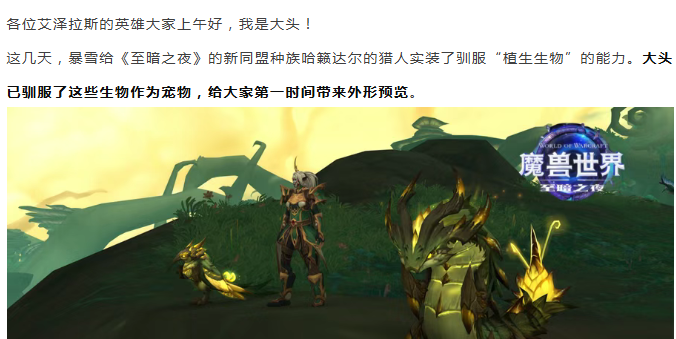 魔兽世界:要颜值还是耳朵?至暗之夜猎人新宠外形预览,金黄光效很炫,魔暴龙有点吵