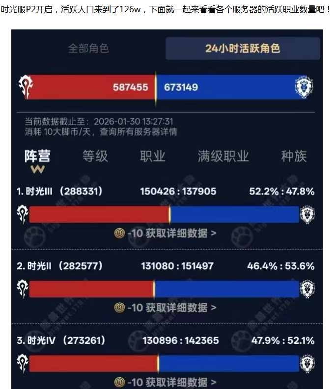 【魔兽世界】时光服活跃人口超越120w,但是一个服务器仅剩2W人了
