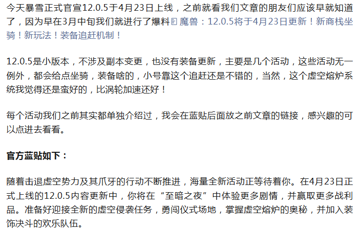 魔兽:12.0.5官宣于4月23日上线!五大新内容抢先看!