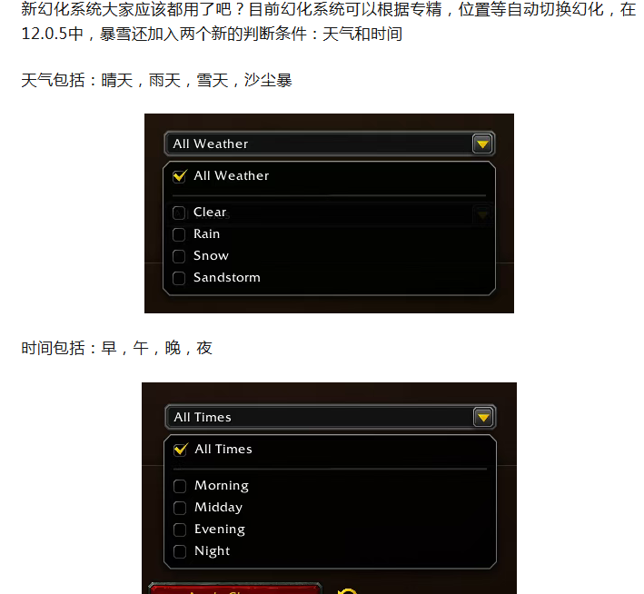 魔兽:暴雪将在12.0.5新增两种幻化情况——天气和时间!