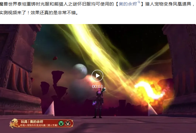 魔兽时光服:猎人宠物变凤凰!实测效果太拉风