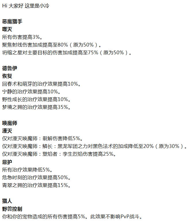【魔兽世界】正式服3月24日职业改动!7个职业加强,1个S级职业削弱