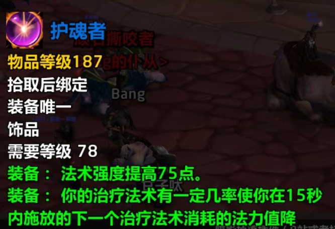 今天分享一个粉丝投稿的素材,在游玩时光服的时候出了治疗团本前毕业的饰品护魂者,对于前期开荒来说续航最强的一个饰品,还是非常不错的
