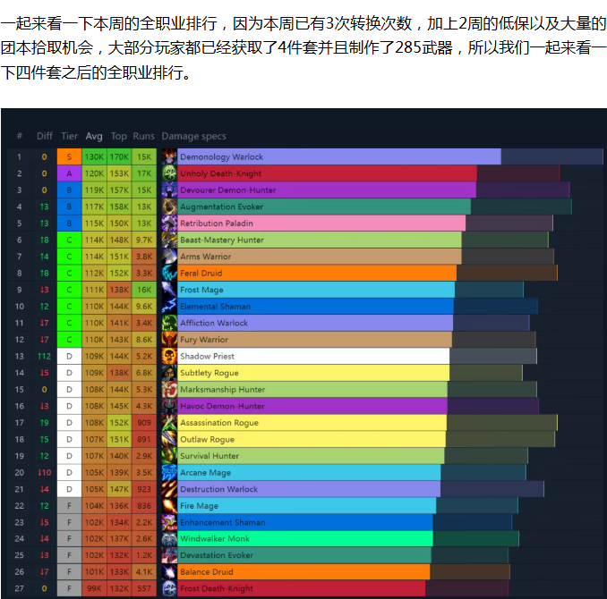 【魔兽世界】12.0 四件套后全职业DPS排行!一个冷门职业彻底翻身做主人了