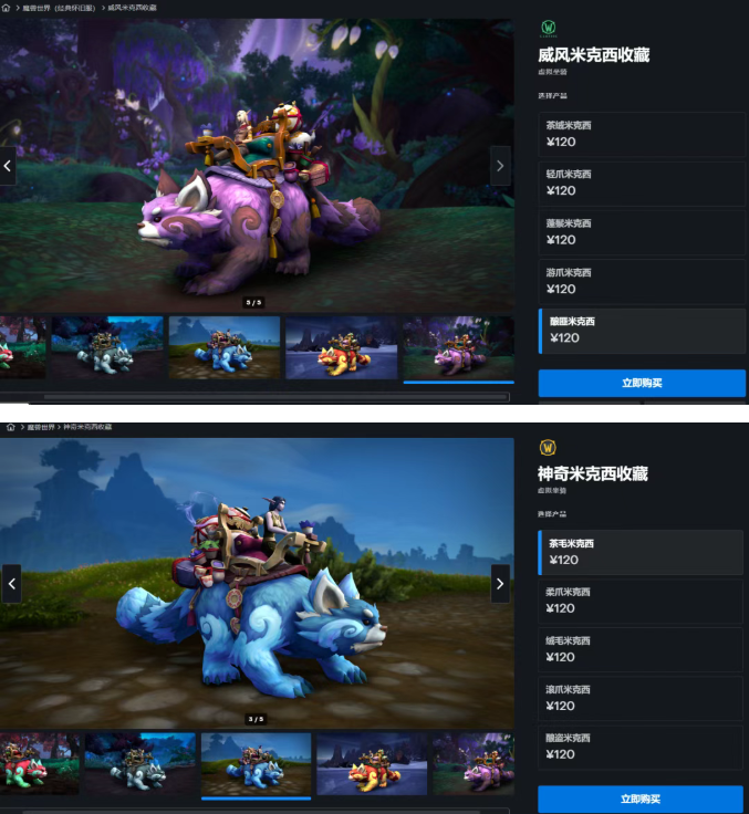 魔兽世界:怀旧服最新坐骑礼包上架,一共五只!
