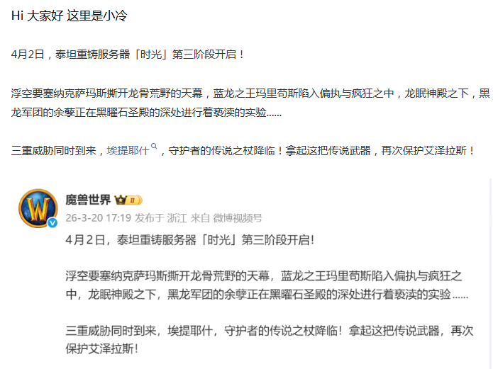 【魔兽世界】官宣!时光服P3阶段开启时间已确定!4月2日起可获取这把传说武器