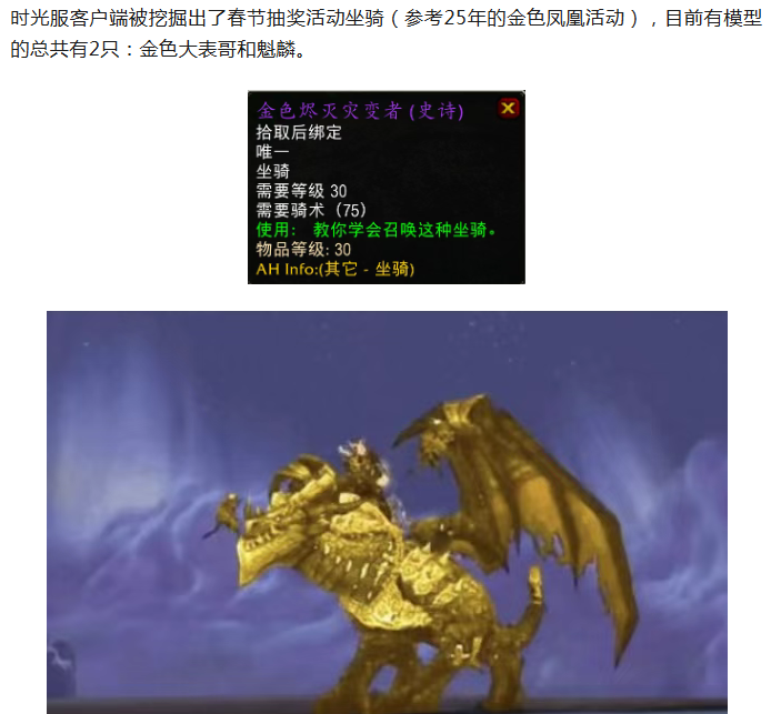 魔兽世界时光服春节活动坐骑挖掘金色大表哥和魁麟