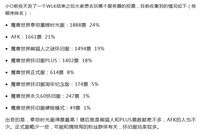 WLK结束后,玩家最想玩的服务器居然是泰坦时光服!
