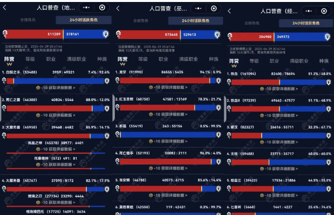 我们还可以看一下魔兽世界近一年来的玩家数量变化,2024年8月地心之战资料片上线后,魔兽世界玩家数量从790万开始增加,到了11月达到巅峰的927万,然后连续3个月滑落,到了2025年2月仅剩下764万。随着11.1解放安德麦上线,玩家开始回流,在4月份,魔兽世界活跃玩家恢复到了802万人。