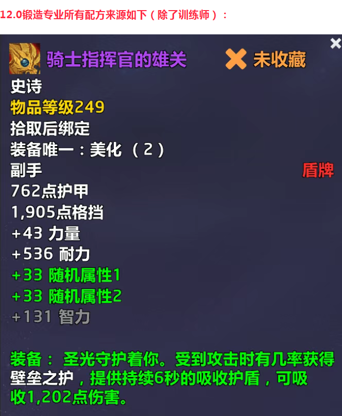 12.0至暗之夜锻造专业全图纸来源!
