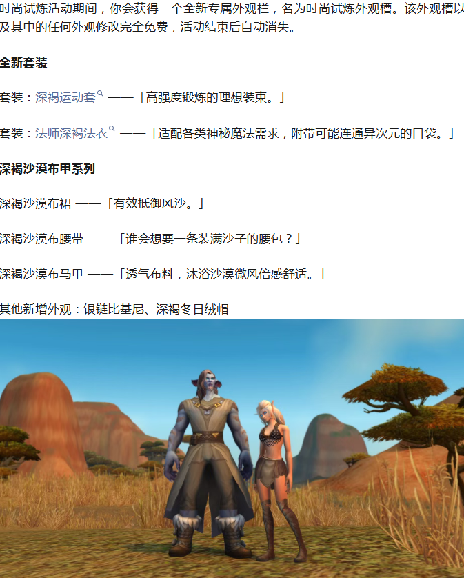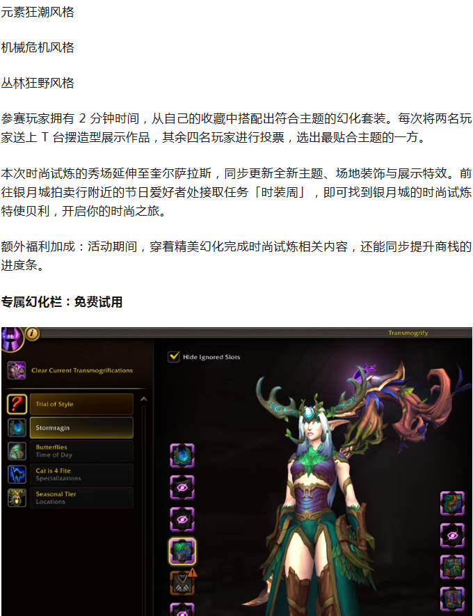 魔兽:时尚试炼今日开启!本次新增两套幻化!活动期间免费幻化!