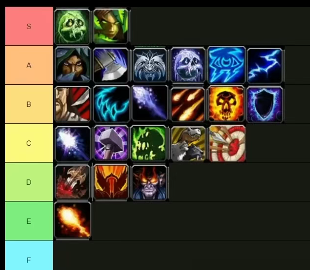 这是当时外网博主根据WCL和团本的实战体验下来每个DPS的评级,最厉害的职业是邪DK和生存猎,垫底的专精是火法!