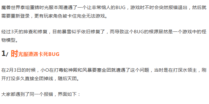 大概是因为魔兽世界多个版本之间很多内容都是复用的,所以才会产生因为正式服补丁模型改动导致时光服游戏崩溃这么离奇的问题。