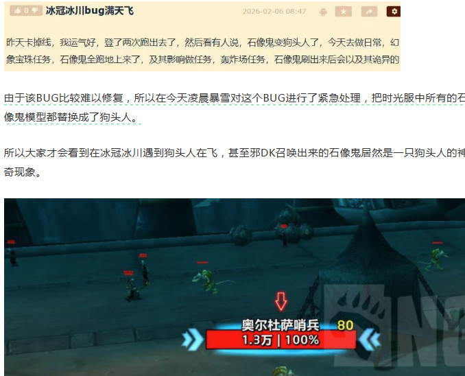 截至目前为止,这个BUG应该已经修复完毕了。小O用邪DK召唤出来的已经是石像鬼的模型,而且在冰冠冰川奥尔杜萨这里看到的奥尔杜萨哨兵也已经恢复成为石像鬼的模型。