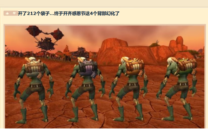 魔兽世界感恩节背部幻化有人200个袋子拿全