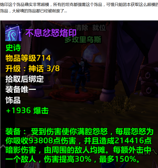 【魔兽世界】最超模的团本饰品!玩家换了这个饰品后伤害直接提高10%