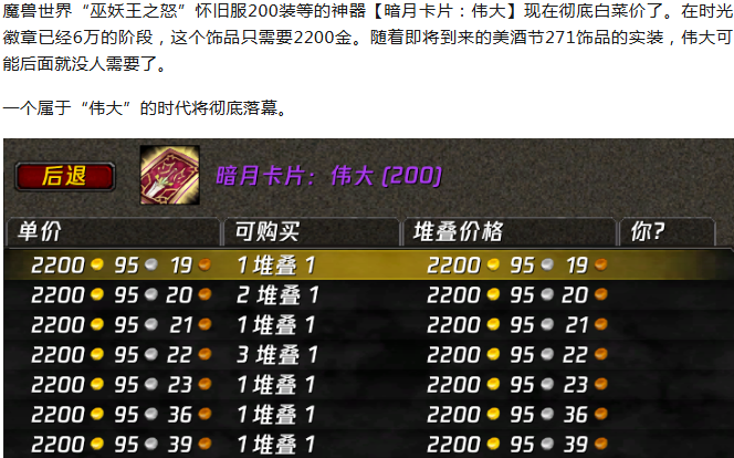 魔兽世界:WLK200装等神器彻底白菜价,一个时代彻底落幕