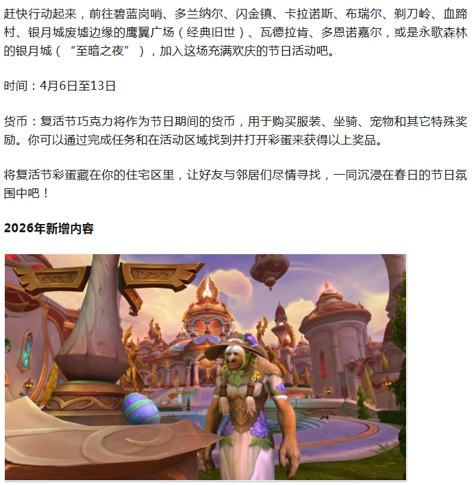 魔兽:复活节4月6日至13日!今年新增一套幻化!