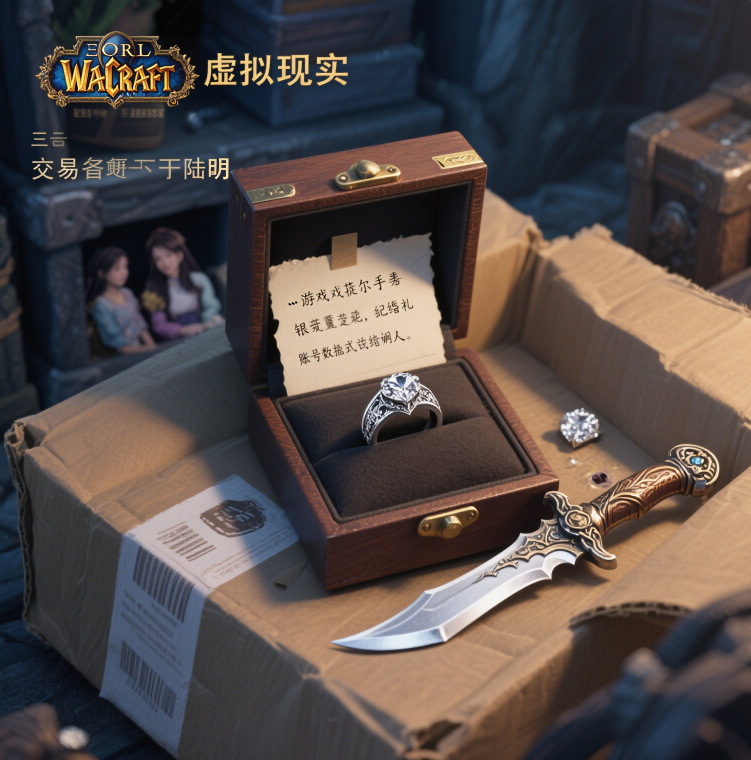 交易完成当天,陆明收到个神秘包裹。铜须寄来的魔兽周边戒指盒里,塞着张纸条:「游戏里的提尔之手银戒换真钻戒,记得婚礼请我当证婚人」。账号数据清除前,陆明发现「霜刃孤狼」的仓库最深处,还留着当年和女友小悠组队时捡的第一把白色品质匕首。