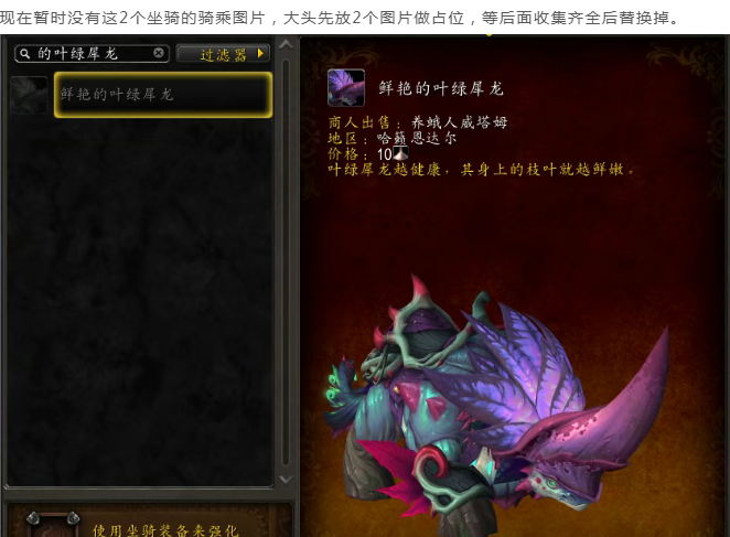 魔兽世界:至暗之夜坐骑“鲜艳的叶绿犀龙、年老的萤光螨”获取前瞻,这2个坐骑也要时间堆