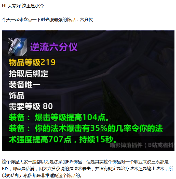 【魔兽世界】时光服最强饰品!玩家换上这个饰品后直接秒变99分大神