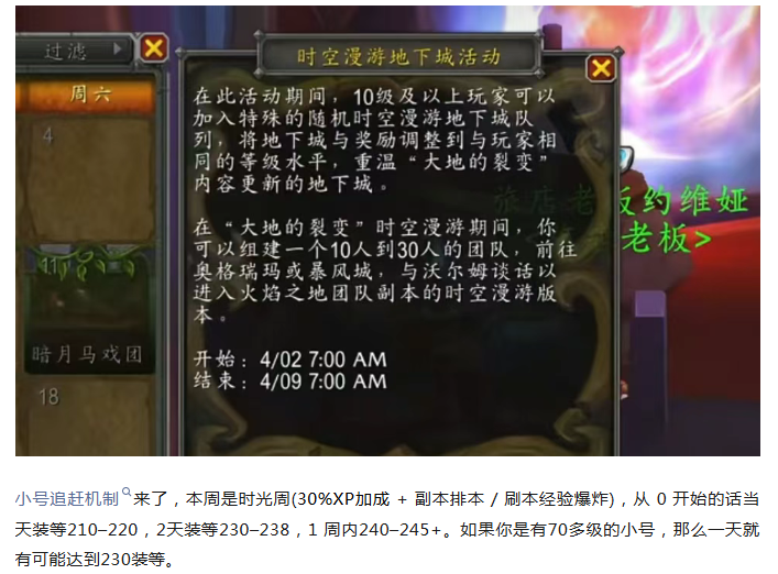魔兽世界:小号追赶机制开放,一天即可反超大号达成毕业装等