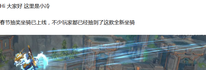 玩家实际体验之后发现,拖尾特效非常夸张,比凤凰坐骑还要夸张,凤凰坐骑的拖尾不够看了已经,新坐骑的特效更夸张一点~