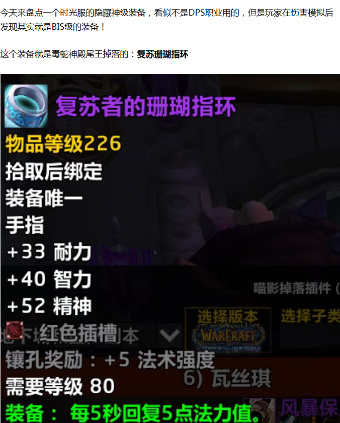 【魔兽世界】时光服隐藏神级装备!玩家100金捡漏发现其实是BIS