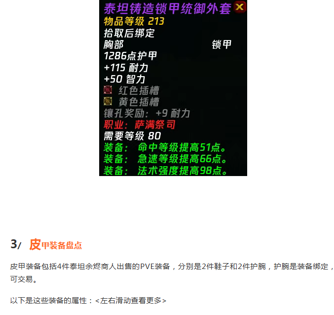 板甲装备包括6件泰坦余烬商人出售的PVE装备,分别是3件鞋子和3件护腕,护腕是装备绑定,可交易。