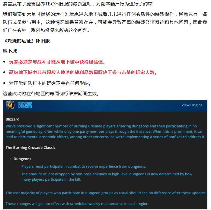 暴雪发布TBC副本新规,躺尸带练刷金全玩完