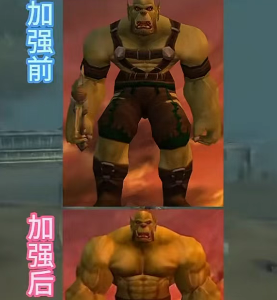 雷火加强规律出炉,战士武器加大,猎人宠物加大,于是就有玩家觉得后续都是往加大的方向,比如兽人肌肉加大50%,巨魔獠牙加长200%,,血精灵三维加大50%。看得出来雷火是真的往大的方向去设计。