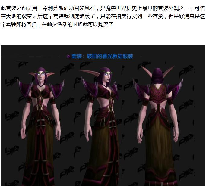 【魔兽世界】20年前绝版的套装可以重新获取了,前夕一定要收集的道具