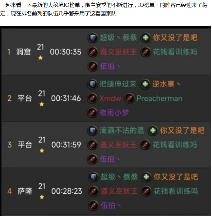 【魔兽世界】正式服最新国家队!术士已被踢出国家队,这个新晋职业登顶了