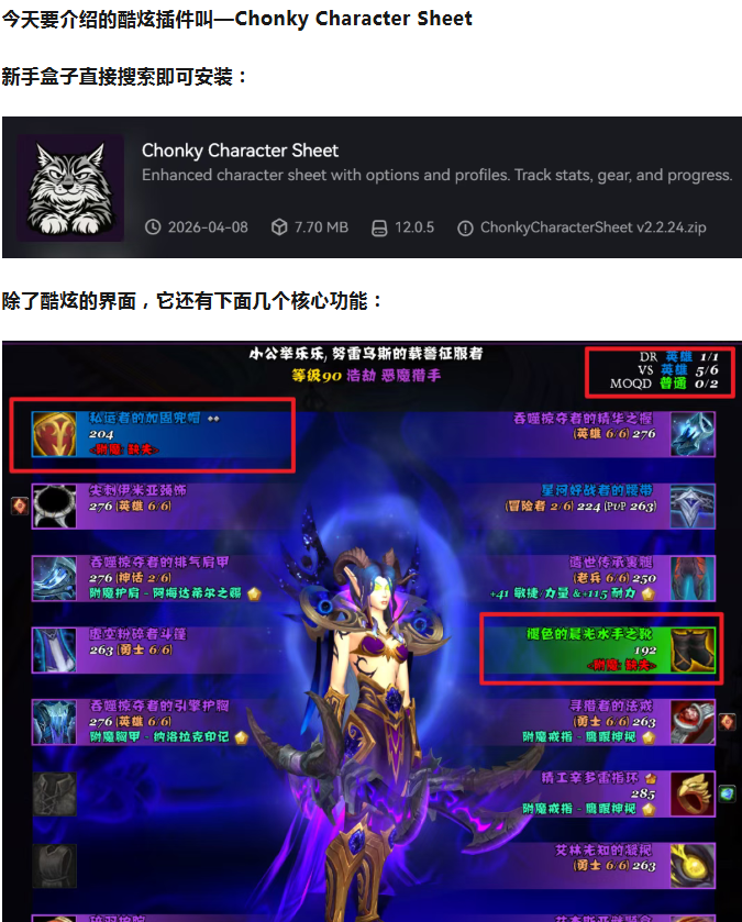魔兽世界插件推荐:超美角色面板,伴有多种实用功能!