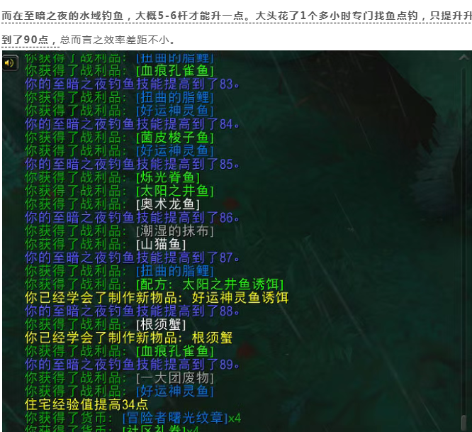 魔兽世界:至暗之夜钓鱼可在这个水域提升,平均3-4杆提升一点